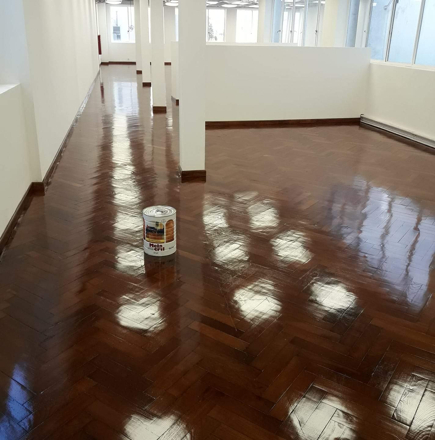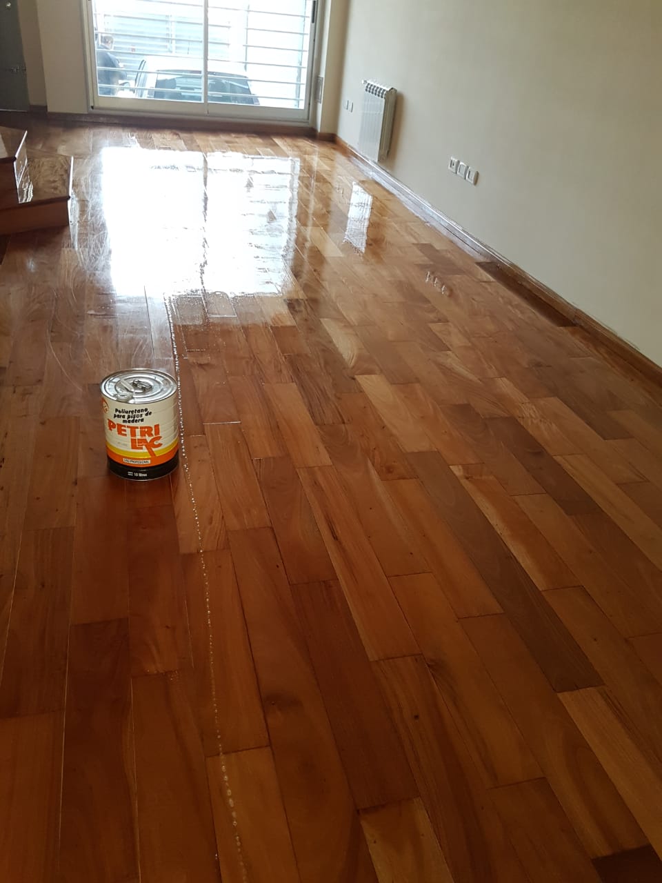 El plastificado de pisos de madera es una laca poliuretánica a base de solvente que brinda máxima dureza y una excelente protección a los pisos de madera y durabilidad. El plastificado puede llevarse a cabo en todo tipo de pisos de madera. El acabado puede ser Brillante, Semi Mate o Mate según la preferencia.